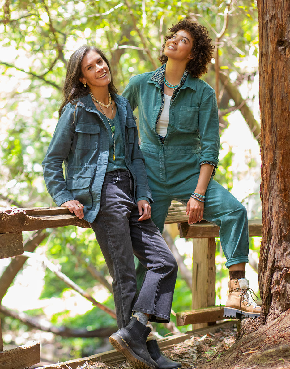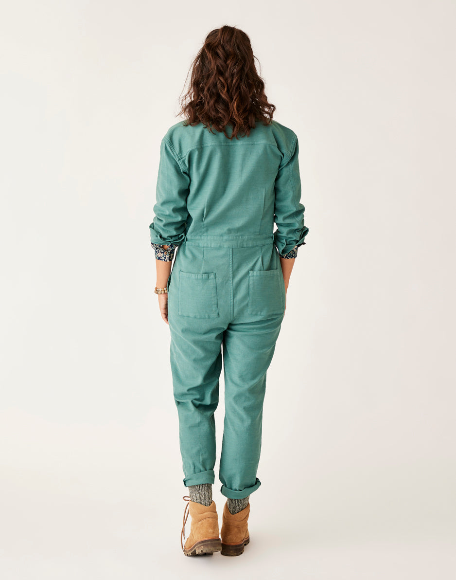 Suit up with the Bedford, it knows how to party. Organic cotton, front scoop pockets and adjustable waist tabs seal the deal. Wear this relaxed, straight leg jumpsuit fit cuffed or uncuffed to show its raw hem. T This product runs slightly small. If you want a relaxed fit, size up. If you want slim fit, order your regular size.