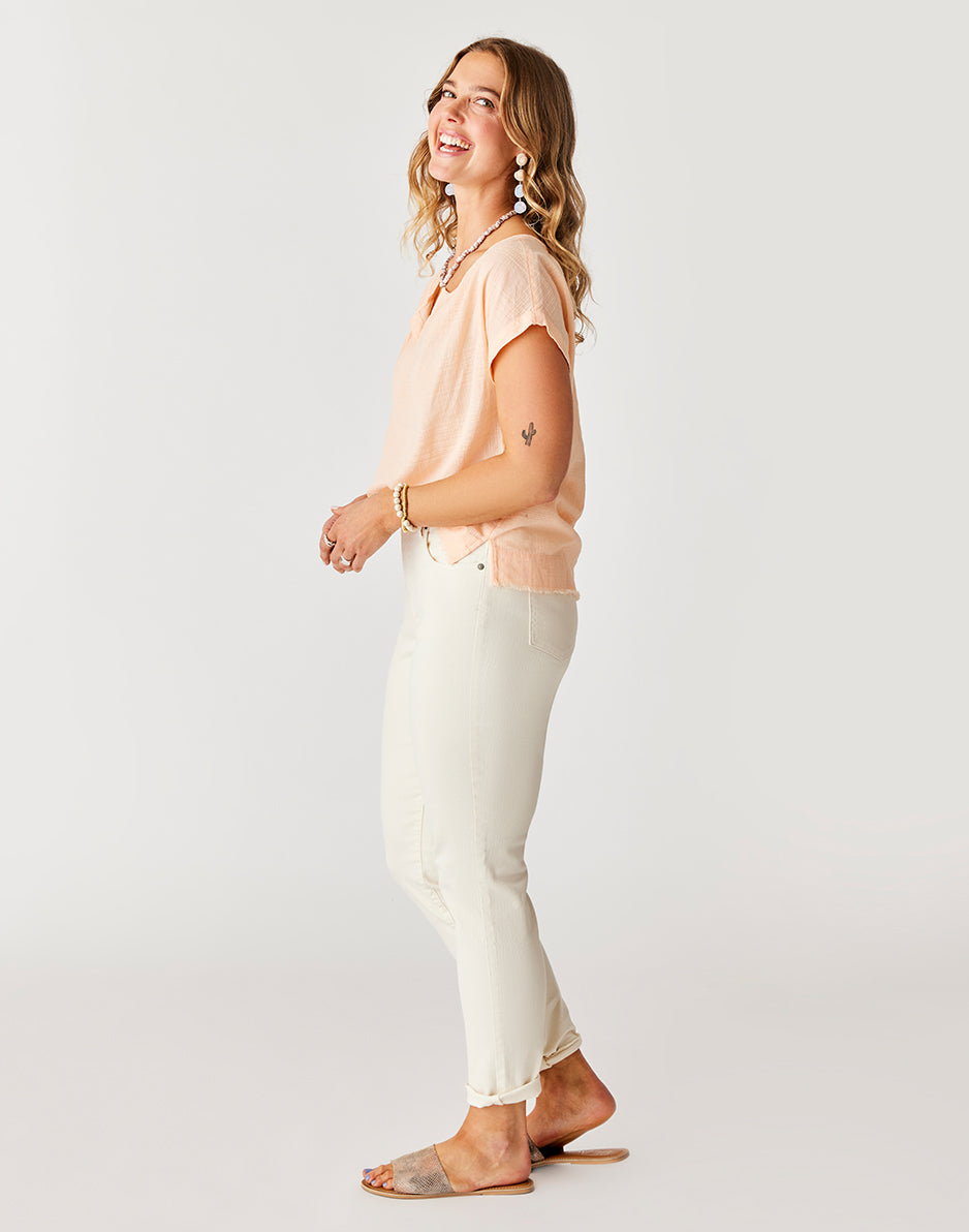 Nearly 50,000 sold. Over 500 five-star ratings. High rise denim with just a little stretch. A slimmer fit around the waist than our regular rise Carson, while still keeping a relaxed fit though the leg. The Carson is an absolute go-to for just about any occasion. Dress it up with a blazer or keep it casual with your favorite white tee and sneakers. This just in: If you’re looking for a jean with the same comfort denim feel as the Carson but a wider leg and higher rise, check out the new Audrey Wide Leg.