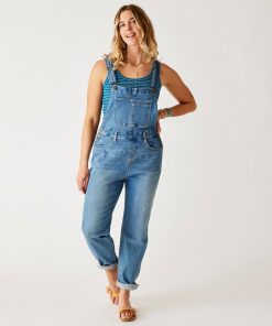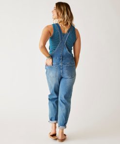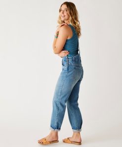 The centaur of pants, the Jason Denim Overall is a magical marriage that looks great with a tank top or bikini top, around the house or about town. Pocket styling on front upper body, button closure at sides and cuff detail with raw hem seal the deal.