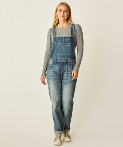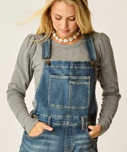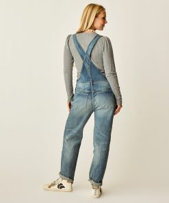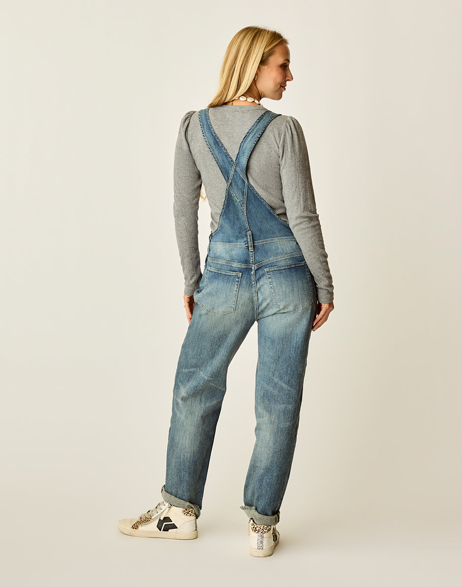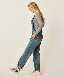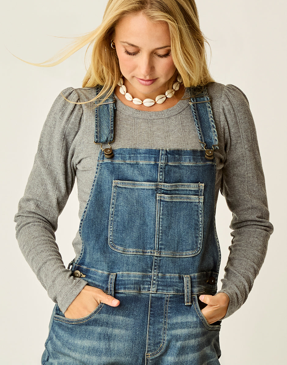 The centaur of pants, the Jason Denim Overall is a magical marriage that looks great with a tank top or bikini top, around the house or about town. Pocket styling on front upper body, button closure at sides and cuff detail with raw hem seal the deal.