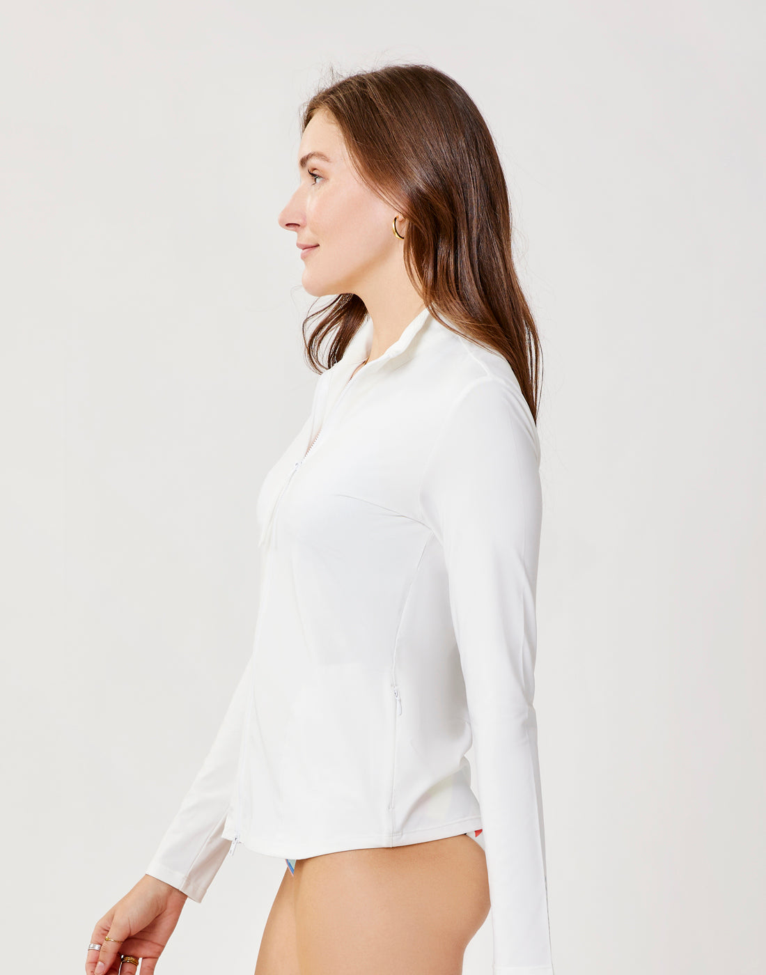 Lightweight and versatile, the full-zip sunshirt provides quick-dry sun protection in the water or around town. Zip pockets on the side seams keep essentials safe without adding bulk.