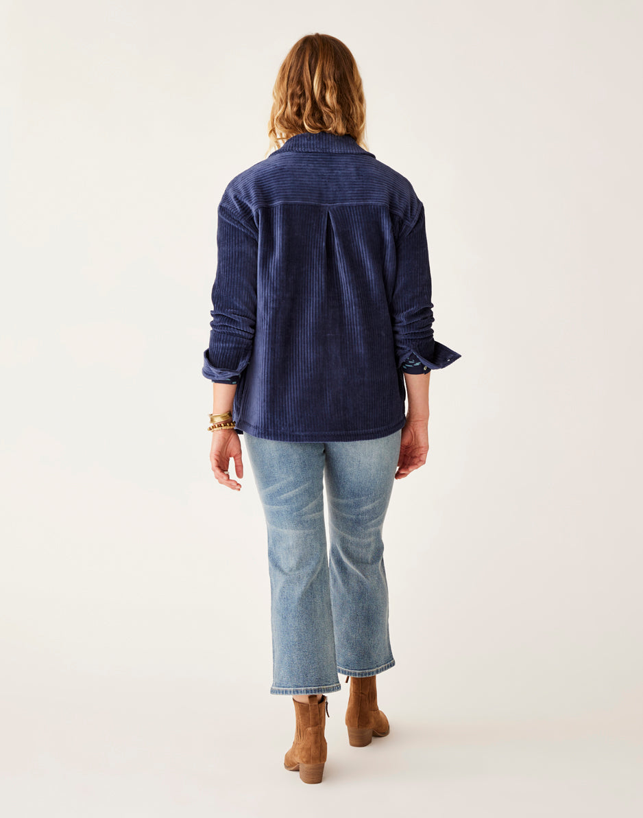 Choose your own adventure with this stretch cord shacket, sporting a shirttail hem, chest and side seam pockets as well as a button front closure. This is not our classic corduroy, but instead a slightly heavier weight, more lustrous and stretchy corduroy fabric that makes for the perfect layer.