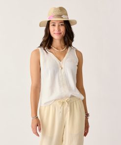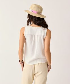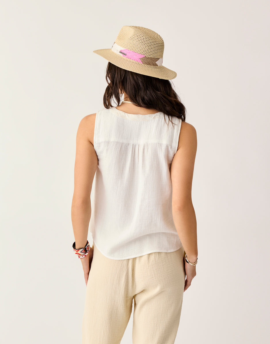 The Kayla echoes the carefree style and grace of summer itself thanks to its 100% organic cotton double gauze, V-neck, shirttail hem, embroidered placket, and acid wash, that gives each piece a unique appearance (excluding Cloud and Tulip).