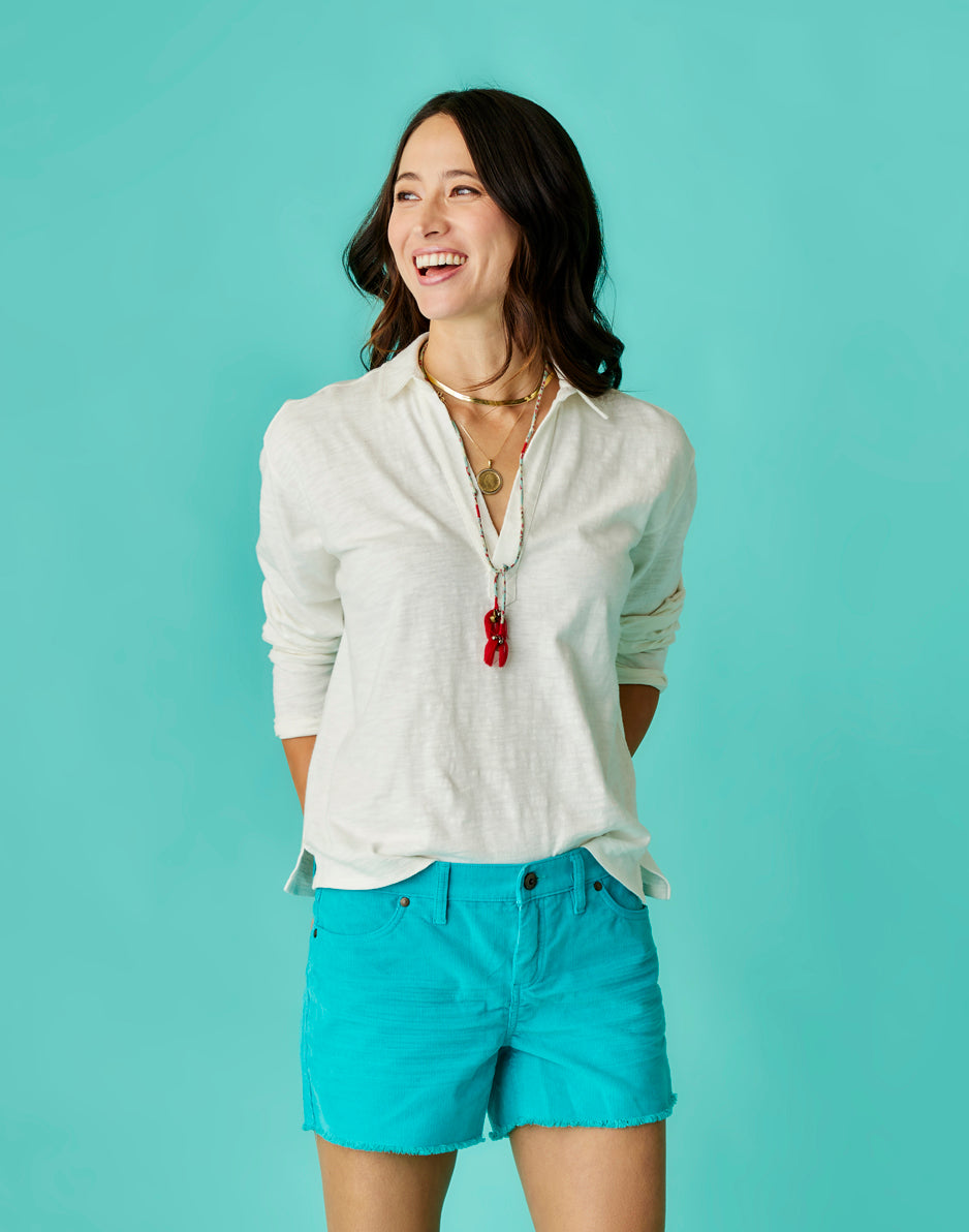 This cute and classic 100% organic cotton, pigment wash polo steps up to the plate with a drop shoulder and side seam slit.