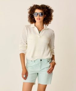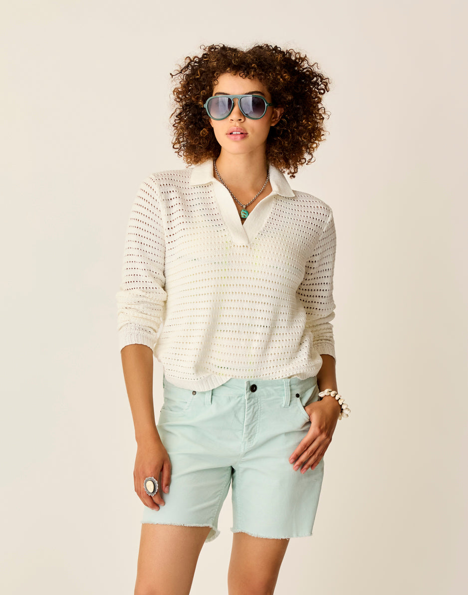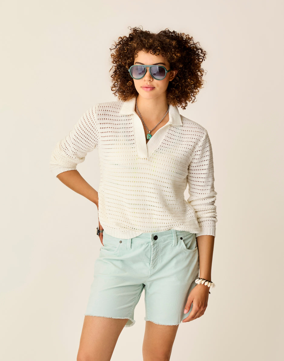 Whether swinging the old polo mallet or sippin’ chard poolside, the Morgan elevates your game, by keeping it classy. You’ll stand a little taller as her relaxed fit, collar & front placket, open airy stitch, and rib hem boost confidence with every savory step.