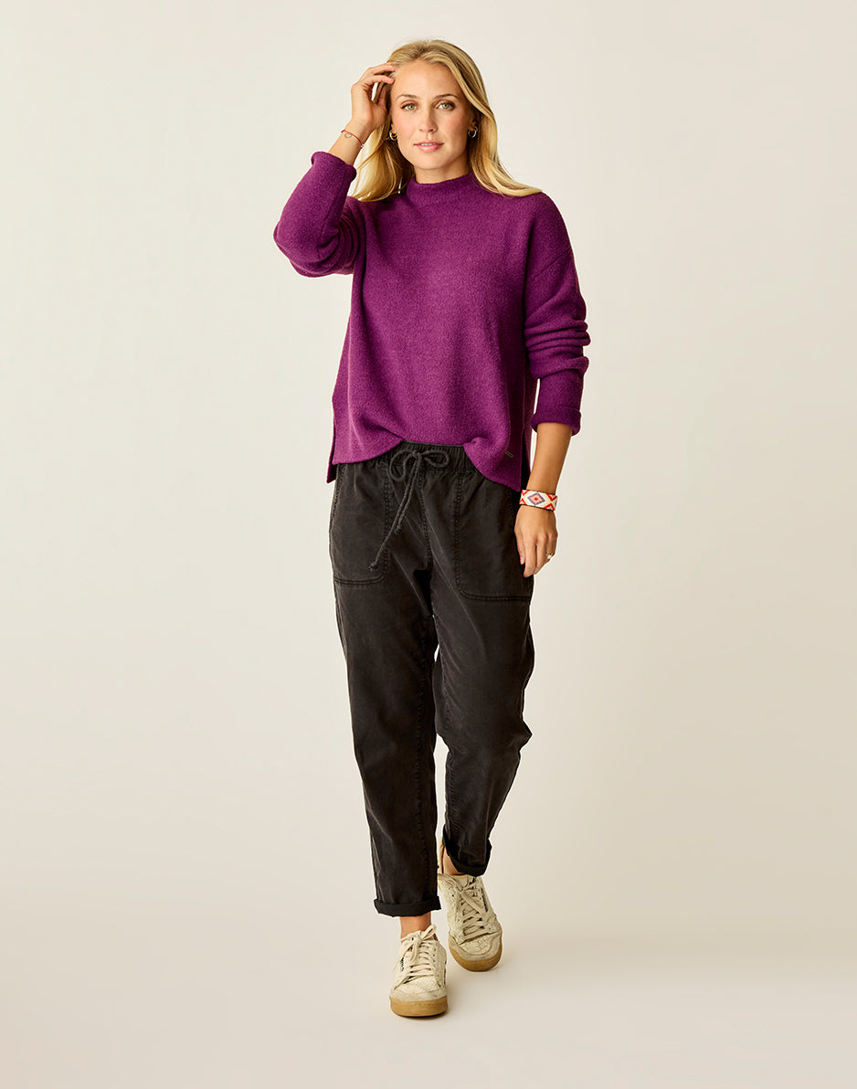 All the love of the original Livia sweater now in an even more buttery soft yarn. The ribbed mock neck, side seam slits and fitted sleeves set this sweater up to be a new favorite in the making.